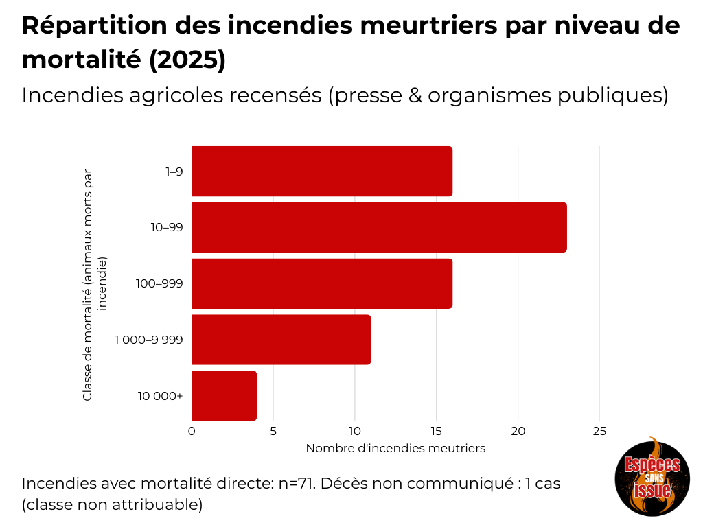 Un nombre limité d’incendies concentre l’essentiel des pertes animales, révélant ainsi une mortalité massive lorsque les conditions sont réunies.