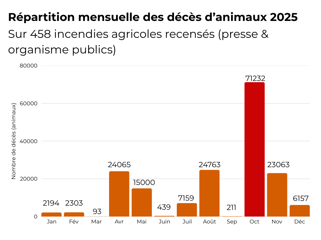 Ce recensement met en évidence une réalité largement invisibilisée : les incendies d’élevage constituent avant tout une catastrophe animale.