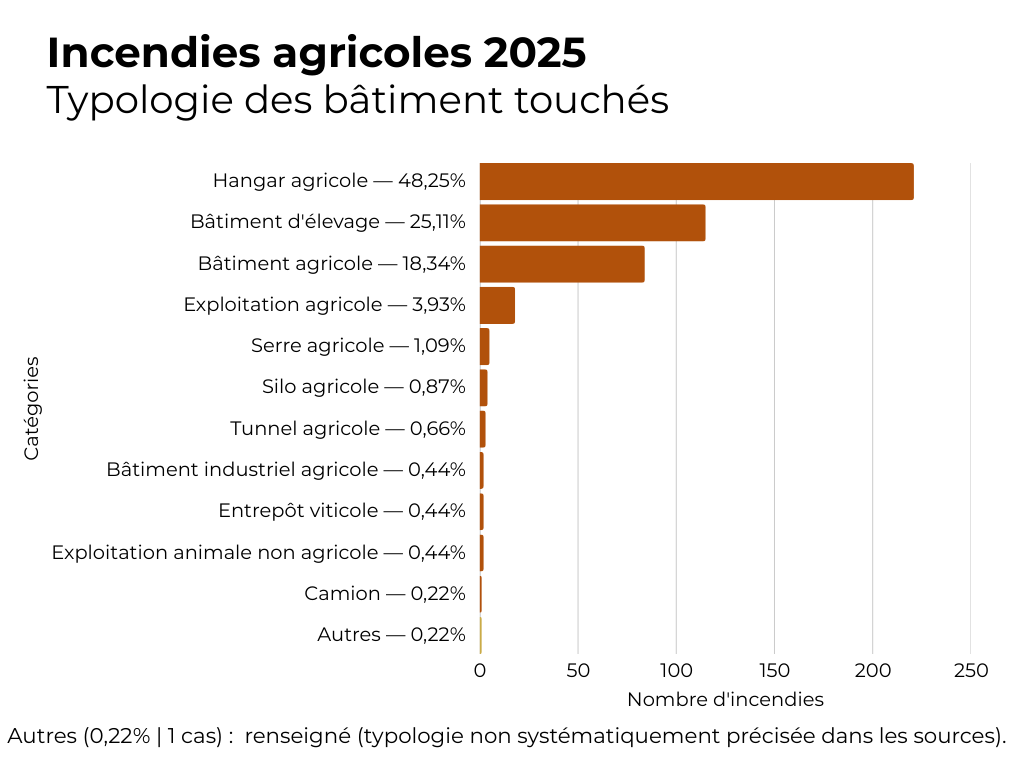 Les données montrent ainsi que le risque d’incendie et de mortalité animale traverse l’ensemble des modèles d’élevage, indépendamment de leur taille ou de leur mode de production.